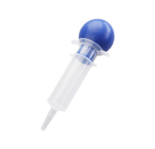 Eine Bewässerungsspritze ist eine medizinische Vorrichtung, die aus einer Glühbirne oder einer Kolbenspritze mit einem integrierten oder abnehmbaren Schlauch besteht.oder Flüssigkeit in, Körperhöhle oder Wunde.