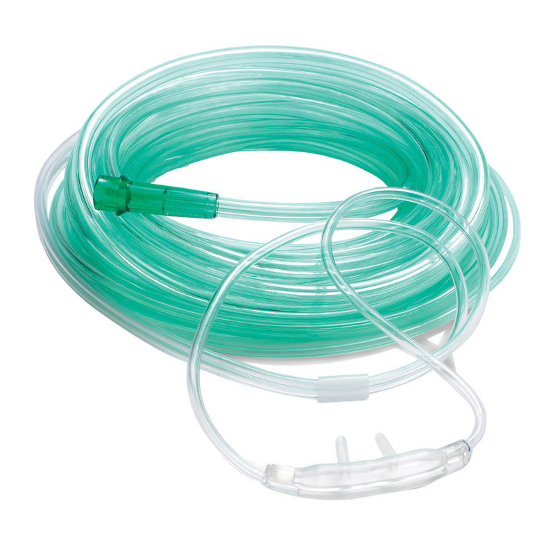- Die Kanüle ist mit einem flexiblen Schlauch verbunden, der eine einfache Bedienung und Beweglichkeit des Patienten während der Sauerstofftherapie ermöglicht.